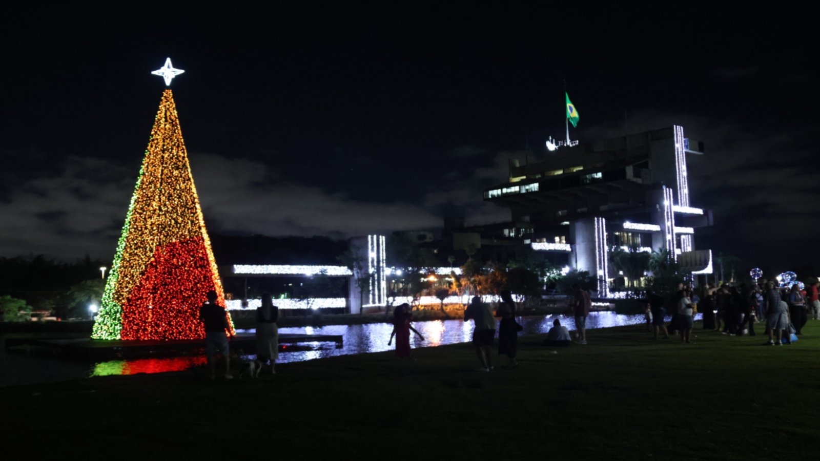 O ponto alto foi o acendimento das luzes de Natal no Paço Municipal. “Preparamos essa festa com muito amor e carinho, espero que vocês aproveitem cada cantinho iluminado e que gostem da novidade deste ano: uma árvore de Natal no lago! Está tudo muito lindo! Espero que tenham um dezembro abençoado junto de seus familiares!”, exclamou a secretária de Governo, Samyra Toledo.