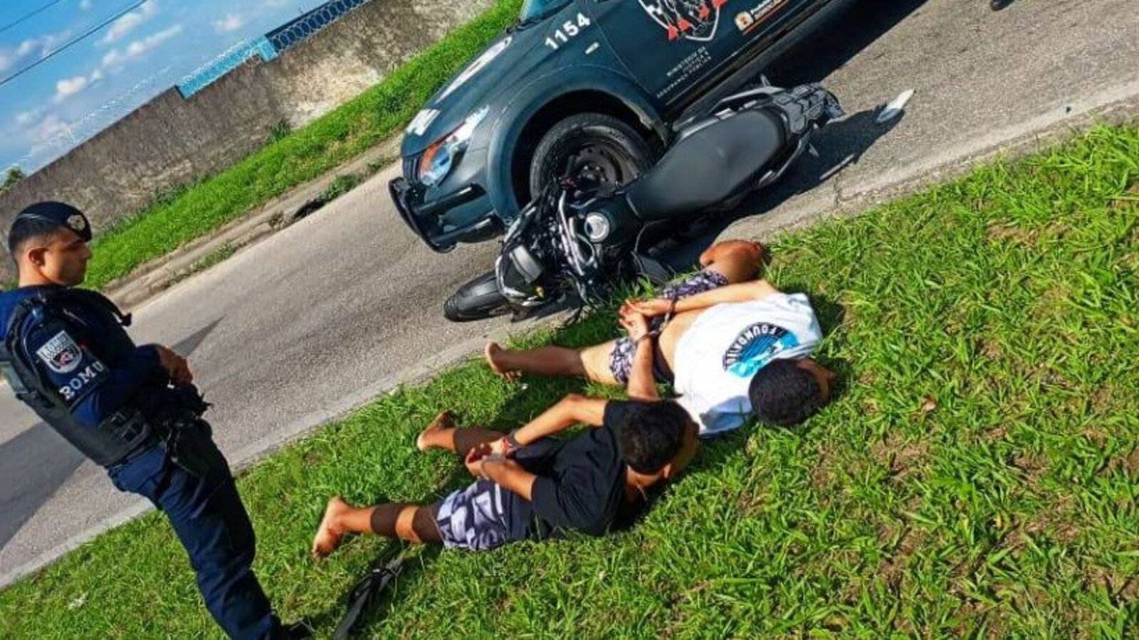 Após a queda, os agentes abordaram os envolvidos, de 20 e 21 anos. Em consulta aos sistemas de segurança pública, não foram encontradas irregularidades na documentação da motocicleta nem dos ocupantes.