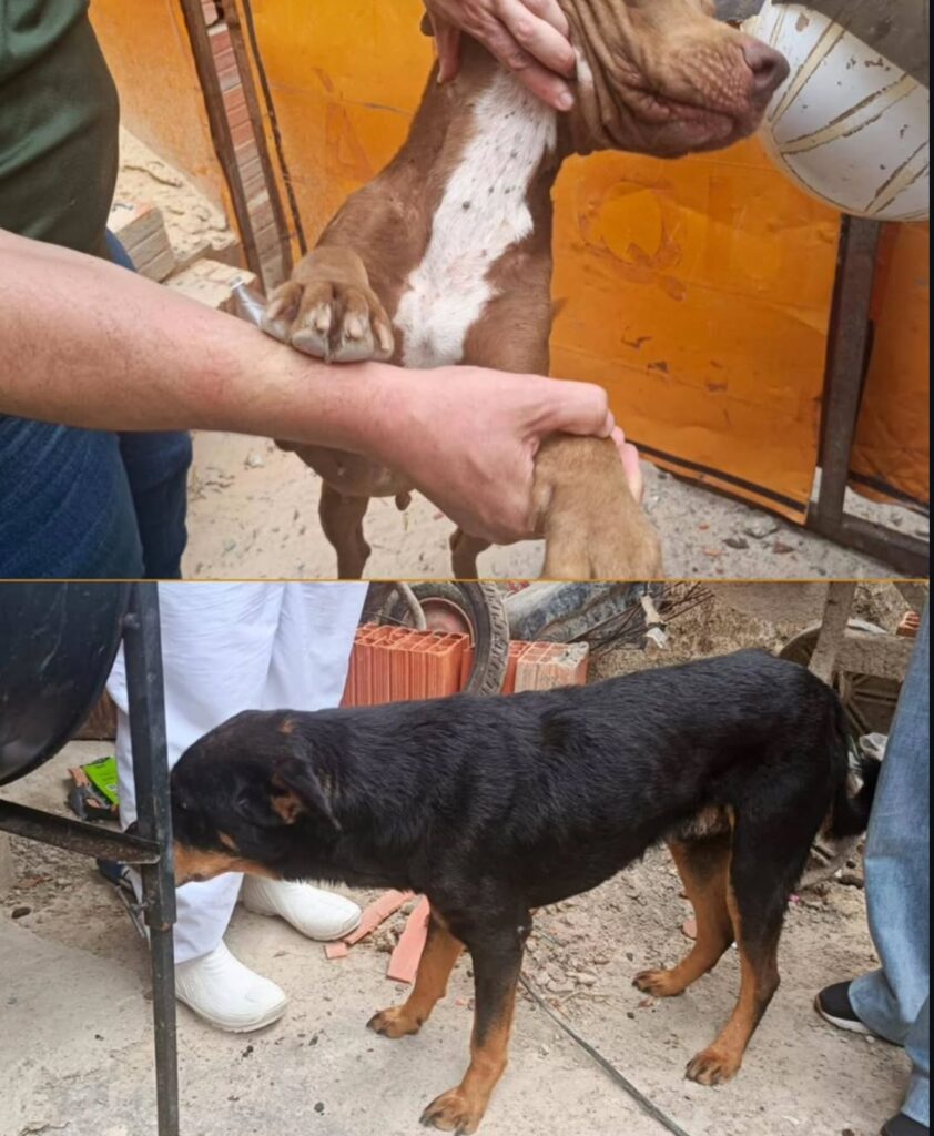No local, os agentes encontraram uma adolescente de 13 anos e sua irmã de 7 anos sozinhas na residência. Durante a vistoria, foram identificados uma cadela da raça pitbull, extremamente magra e mantida em uma sacada sem proteção, e um cão sem raça definida. Ambos estavam infestados por pulgas e carrapatos, além de viverem em um espaço insalubre, com grande acúmulo de sujeira e fezes.