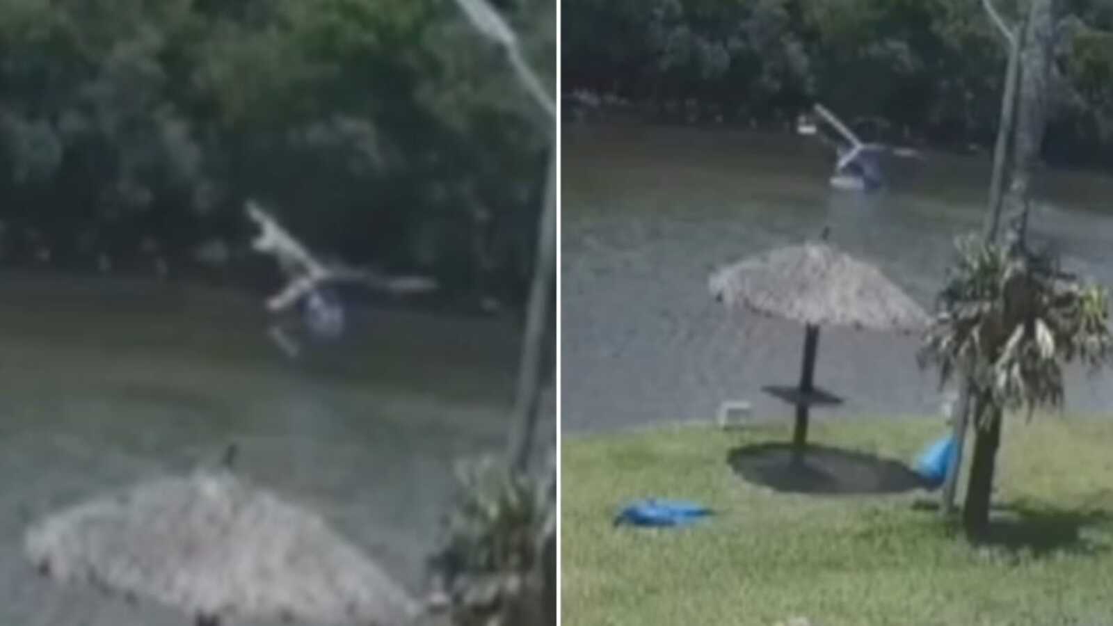 VÍDEO: Helicóptero cai em lago de pesqueiro em São Roque